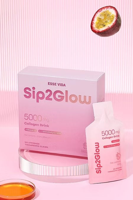 Is a ready-to-drink formula with premium Korean Collagen Tripeptide, Fish Collagen Peptide, Vitamin C, and GABA (γ-Aminobutyric Acid) to promote skin health, hydration, and elasticity, reduce wrinkles, and support mood and sleep. It is designed for superior absorption and comes in a convenient, tear-and-sip sachet for on-the-go consumption.